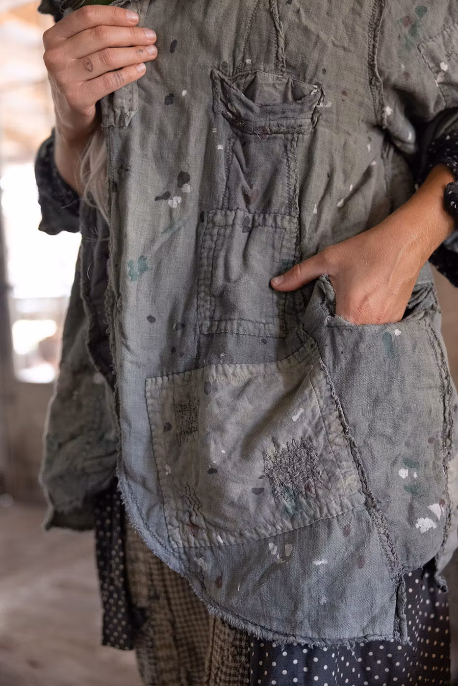 Linne | Lapptäcke | Färgstänk | Blandade knappar | Handblekning och lagning